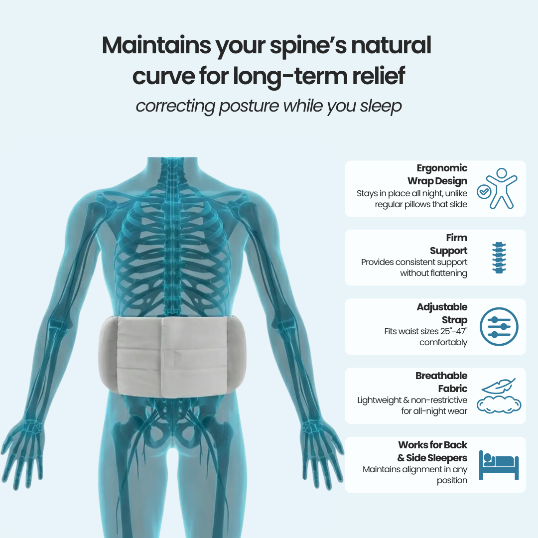 As your back relaxes, tight muscles release, circulation improves, and each night your body starts rebuilding healthy alignment on its own.